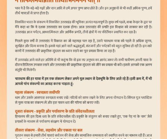 Read Moreप्रधानमंत्री नरेंद्र मोदी ने चारधाम यात्रा के लिए प्रेषित की शुभकामनाएं डिजिटल उपवास पर रहते हुए, उत्तराखंड की प्राकृतिक सुंदरता