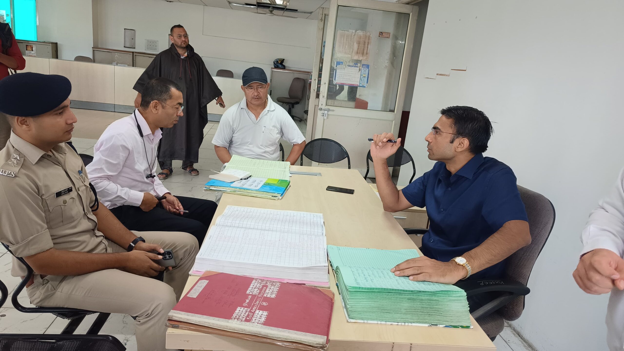 देहरादून- जिलाधिकारी सविन बंसल ने तहसील सदर का किया औचक निरीक्षण। जिलाधिकारी  आज सुबह वर्षा के बीच प्रातः 9ः50 बजे तहसील सदर पंहुचे। जिलाधिकारी ने उपस्थिति पंजिका का निरीक्षण करते हुए देरी से आने वाले कार्मिकों जारी की चेतावनी, 10ः30 बजे बाद आने वाले कार्मिकों का 01 दिन के वेतन रोकने के दिए निर्देश। सुस्त कार्यप्रणाली पर डब्लू.बी.एन, ए.डब्लू.बी.एन के तबादले को किया आदेशित।