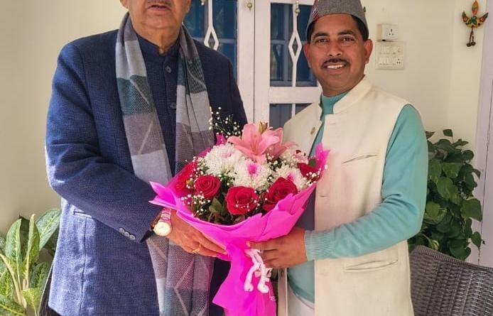 कृषि मंत्री गणेश जोशी से औद्योनिकी परिषद में नवनियुक्त सदस्य संजय थपलियाल ने की भेंट