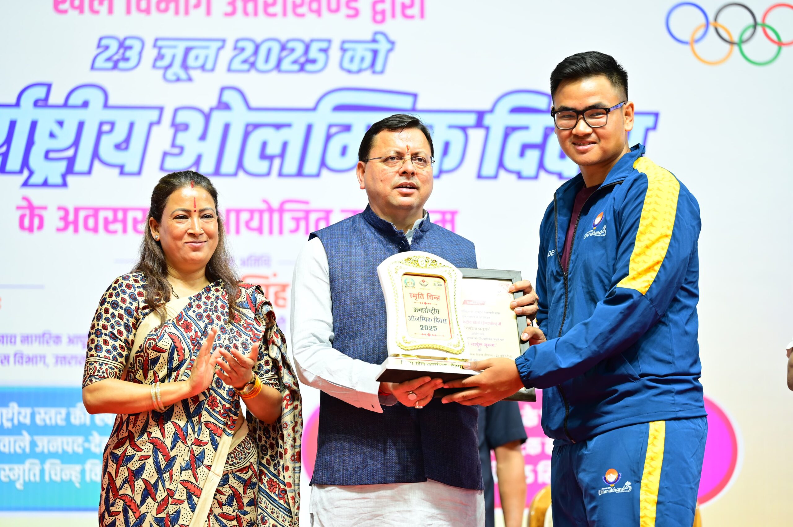 सीएम धामी ने देहरादून जनपद को विजेता ट्रॉफी और 05 लाख रुपये का चेक किया प्रदान