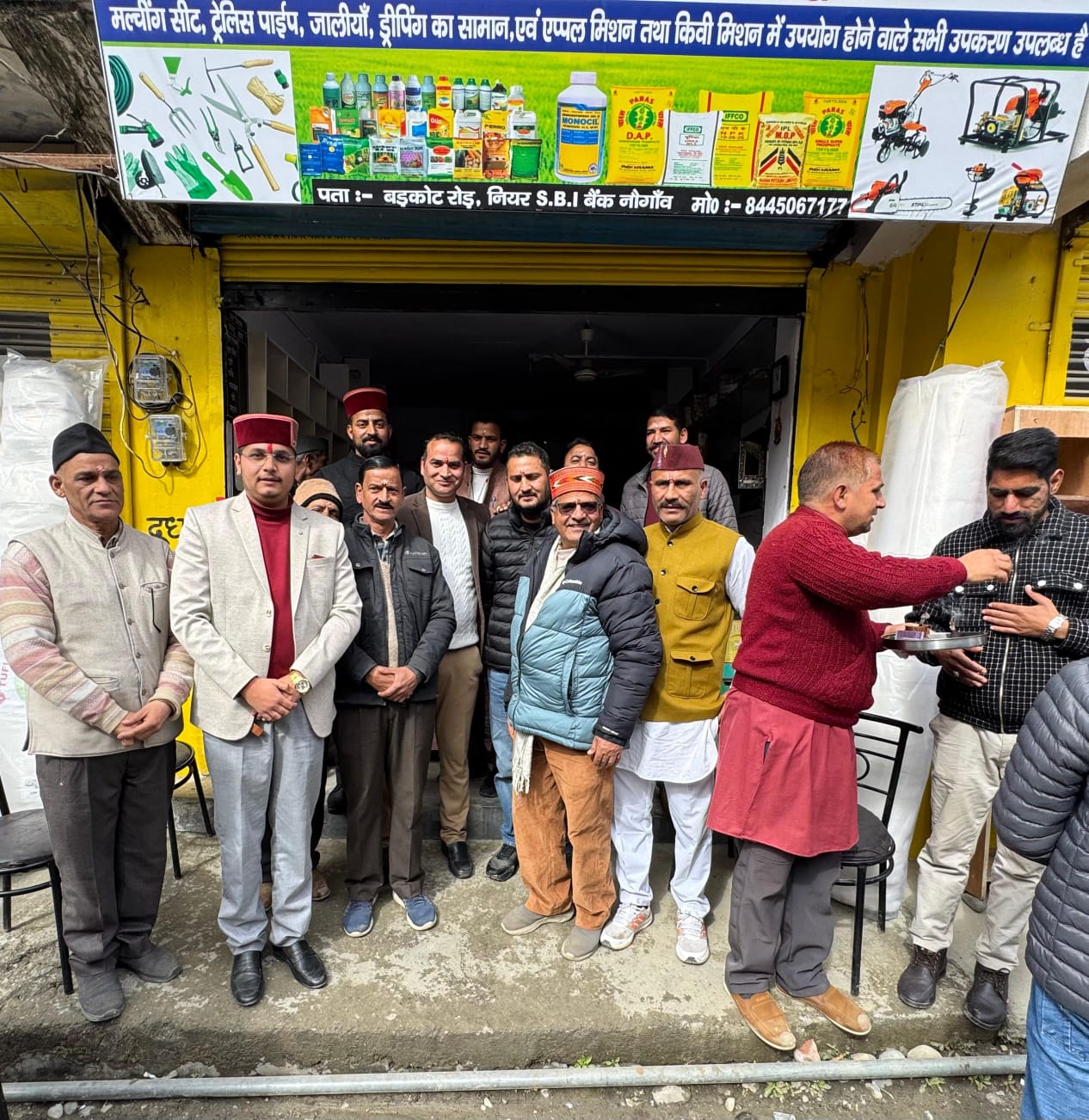 नगर पंचायत नौगांव में नेशनल हाईवे यमुनोत्री पर निकट SBI शाखा के समीप अशोक मनोड़ी, पप्पी, पिंटू, विपिन राणा ने “देवभूमि फार्मिंग सॉल्यूशन” की दुकान खोली है। जिसका उद्घाटन विधिवत पूजा/अर्चना के बाद व्यापार मंडल अध्यक्ष विपिन रमोला, नगर पंचायत अध्यक्ष विजय कुमार, जिला पंचायत सदस्य विजय प्रकाश बंधानी, पालिकाध्यक्ष बिहारी लाल शाह ने रिबन काटकर किया है। साथ ही दुकानदार को बधाई और शुभकामनाएं दी ,साथ ही किसानों को सभी प्रकार के कृषि यंत्र उपलब्ध कराने की अपील की है। दुकानदार अशोक मनोड़ी ने कहा कि स्थानीय किसानों को पहले कृषि यंत्र खरीदने के लिए विकासनगर, बड़कोट पुरोला के चक्कर लगाने पड़ते थे ,कृषकों की पीड़ा को देखते हुऐ “देवभूमि फार्मिंग सॉल्यूशन” खोलने का विचार मन में आया। जिसके बाद सोमवार को दुकान का नाम विधिवत उद्घाटन हो गया। उन्होंने सभी कृषकों को सेवा का मौका देने की अपील की साथ ही कहा की यहां पर सभी प्रकार के कृषि यंत्र उपलब्ध है ।