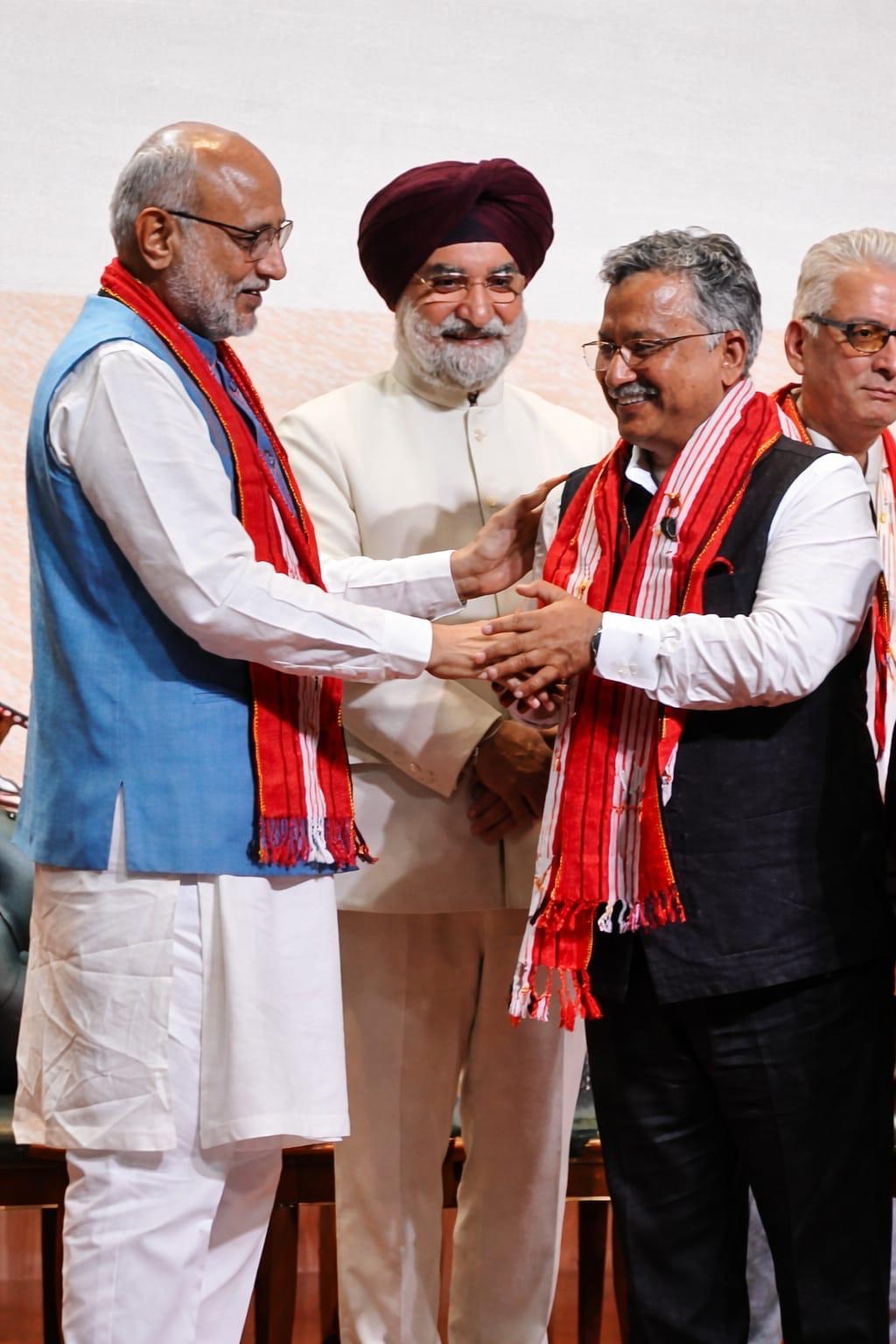 भारत मंडपम, नई दिल्ली में आयोजित ITITI, दून संस्कृति स्कूल, देहरादून के रजत जयंती समारोह के अवसर पर ‘विज्ञान और प्रौद्योगिकी के माध्यम से जनजातीय जीवन में परिवर्तन’ विषय पर एक राष्ट्रीय सम्मेलन के दौरान भारत के माननीय उपराष्ट्रपति सी.पी. राधाकृष्णन द्वारा यूकॉस्ट के महानिदेशक प्रो. दुर्गेश पंत को विज्ञान एवं प्रोद्योगिकी के क्षेत्र में उत्कृष्ट कार्यों के लिए सम्मानित किया गया।