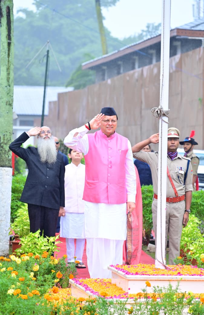 सीएम पुष्कर सिंह धामी ने 79 वें स्वतंत्रता दिवस के अवसर पर मुख्यमंत्री आवास में किया ध्वजारोहण