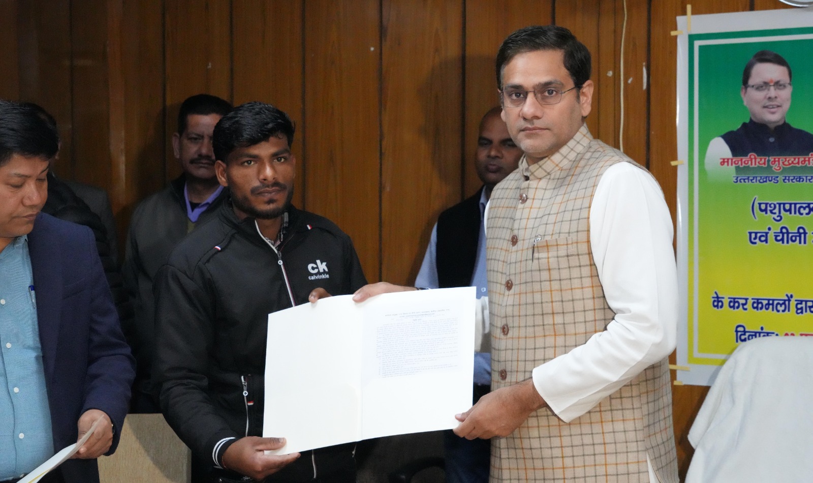 गन्ना विकास मंत्री सौरभ बहुगुणा ने चयनित गन्ना पर्यवेक्षकों को किए नियुक्ति पत्र वितरित
