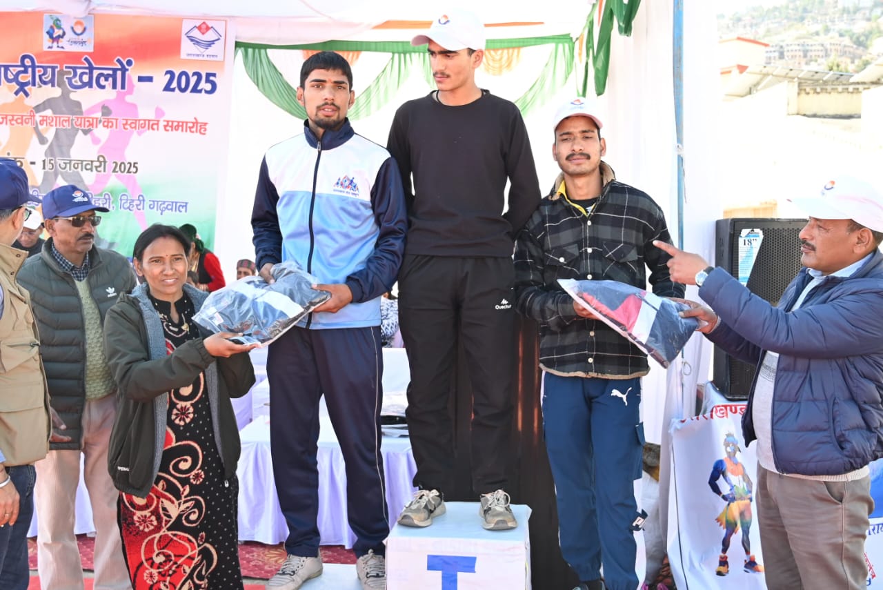 38वें राष्ट्रीय खेलों की मशाल तेजस्विनी और शुभंकर मौली का टिहरी आगमन पर जोरदार स्वागत