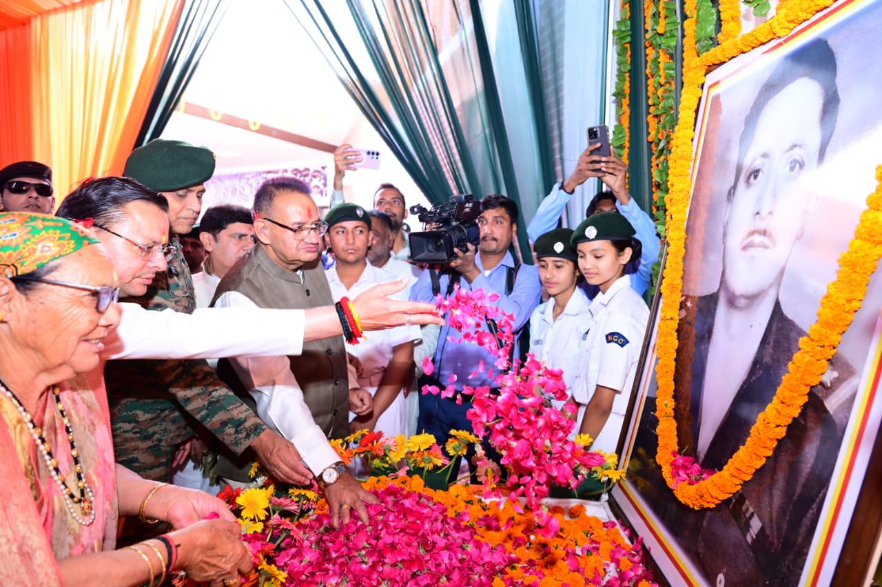 मुख्यमंत्री ने कार्यक्रम के दौरान अपने पिता स्व. सूबेदार शेर सिंह धामी के चित्र पर श्रद्धा सुमन अर्पित किए तथा शहीदों के चित्रों पर पुष्प अर्पित कर उन्हें नमन किया। उन्होंने शहीदों के परिजनों एवं वीर नारियों को शॉल ओढ़ाकर सम्मानित भी किया। इस अवसर पर उन्होंने 60 वीर नारियों एवं 80 वीर योद्धाओं को सम्मानित किया।
