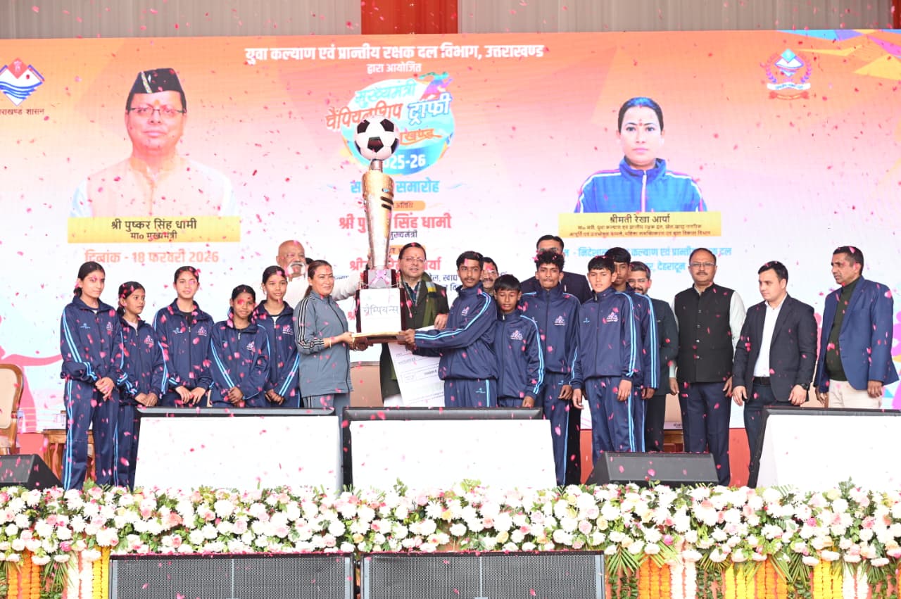 सीएम धामी ने देहरादून जनपद को विजेता ट्रॉफी और 05 लाख रुपये का चेक किया प्रदान