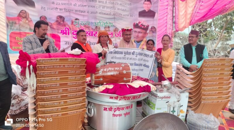पुरोला विधायक दुर्गेश्वर लाल ने बांटी महिला मंगल दलों को सामग्री