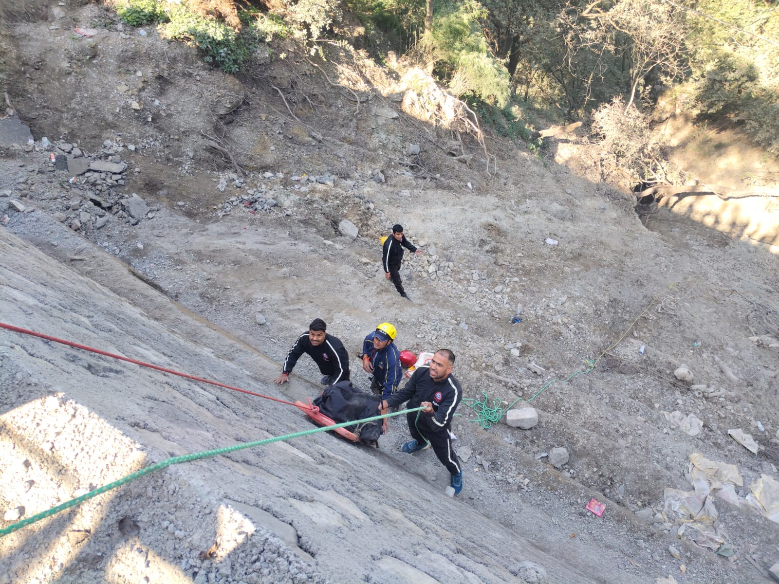 बाइक सवार पिता-पुत्र गिरे गहरी खाई में, पिता की मौत, पुत्र घायल