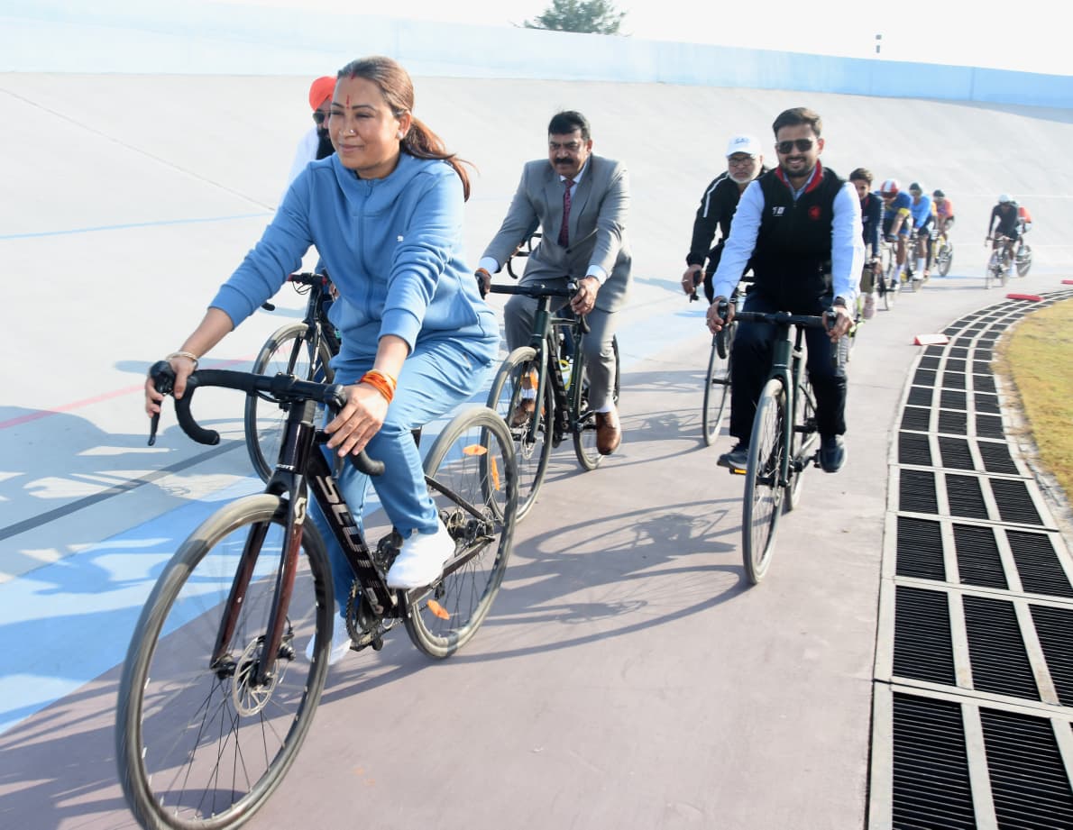 रुद्रपुर- रुद्रपुर स्थित शिवालिक वेलोड्रोम में आयोजित 77वी सीनियर, 54वी जूनियर और 40वी सब जूनियर नेशनल ट्रैक साइकिलिंग चैंपियनशिप में पहुंचकर खेल मंत्री रेखा आर्या ने सोमवार को साइकिलिस्टों का उत्साहवर्धन किया। इस आयोजन में देश भर के लगभग सभी राज्यों और केंद्र शासित प्रदेशों से आए 600 से ज्यादा खिलाड़ी हिस्सा ले रहे हैं।