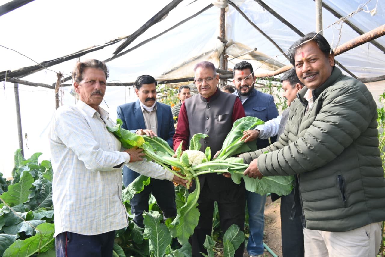 कृषि मंत्री गणेश जोशी ने भगरतौला में किसानों से किया संवाद, पॉलीहाउस क्लस्टर मॉडल की सराहना की