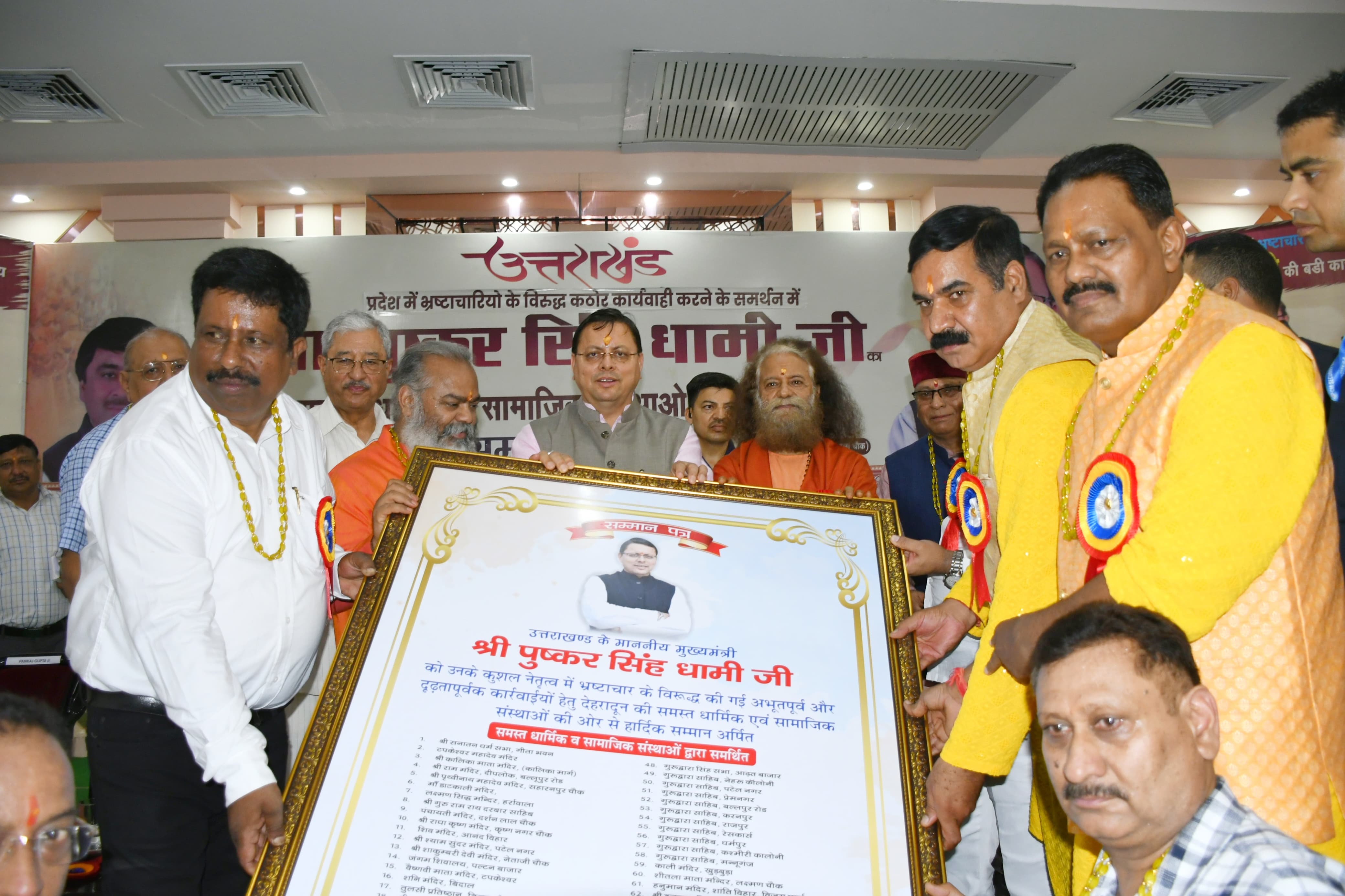 भ्रष्टाचार मुक्त उत्तराखंड’ के लिए मुख्यमंत्री द्वारा किए जा रहे प्रयासों पर धार्मिक और सामाजिक संस्थाओं ने सीएम धामी किया सम्मान और अभिनंदन