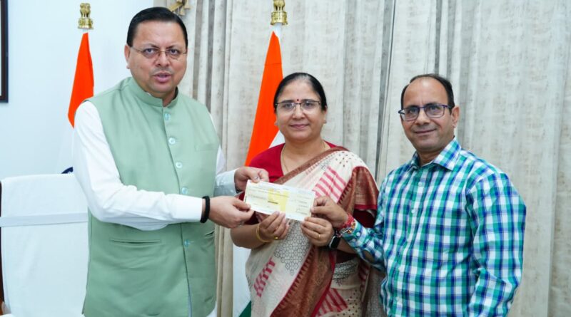 देहरादून- सीएम पुष्कर सिंह धामी से मुख्यमंत्री आवास में आज दून विश्वविद्यालय की कुलपति प्रो. सुरेखा डंगवाल ने शिष्टाचार भेंट की और इस अवसर पर मुख्यमंत्री को दून विश्वविद्यालय के सभी शिक्षकों, अधिकारियों एवं कर्मचारियों का एक दिन का वेतन  मुख्यमंत्री राहत कोष में योगदान स्वरूप भेंट किया , ताकि आपदा प्रभावित लोगों की मदद की जा सके। मुख्यमंत्री श्री पुष्कर सिंह धामी ने इस सामूहिक सहयोग भावना की सराहना करते हुए कहा कि “आपदा की इस घड़ी में दून विश्वविद्यालय का यह योगदान न केवल एक प्रेरक कदम है, बल्कि यह राज्य के शैक्षणिक संस्थानों की सामाजिक जिम्मेदारी और संवेदनशीलता को भी दर्शाता है।”