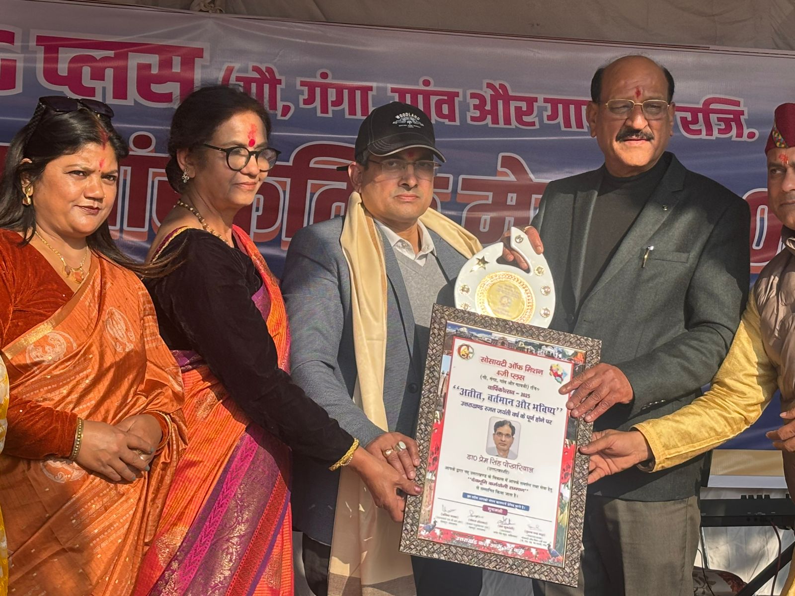 कार्यक्रम में राष्ट्र निर्माण, सामाजिक एकता, सांस्कृतिक चेतना एवं सेवा भाव पर केंद्रित विचार प्रस्तुत किए गए। इस अवसर पर 4G मिशन सोसाइटी देहरादून द्वारा जिला चिकित्सालय उत्तरकाशी के प्रमुख अधीक्षक डॉ. प्रेम सिंह पोखरियाल को उनके उत्कृष्ट प्रशासनिक कार्य, जनसेवा के प्रति समर्पण और स्वास्थ्य सेवाओं को सुदृढ़ बनाने में उनके योगदान के लिए सम्मानित किया। सम्मान समारोह में वक्ताओं ने कहा कि डॉ. पोखरियाल का कार्य स्वास्थ्य सेवाओं में संवेदनशीलता, अनुशासन और सेवा भावना का उत्कृष्ट उदाहरण है, जिससे आमजन को प्रत्यक्ष लाभ मिला है।