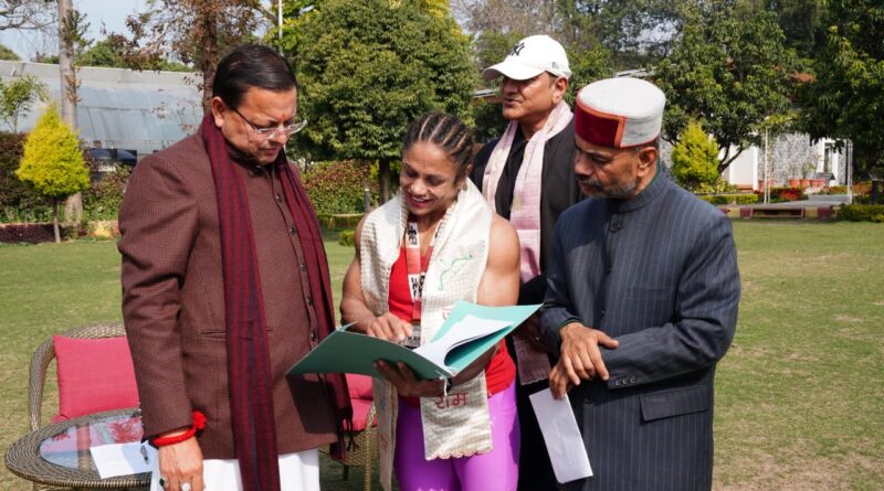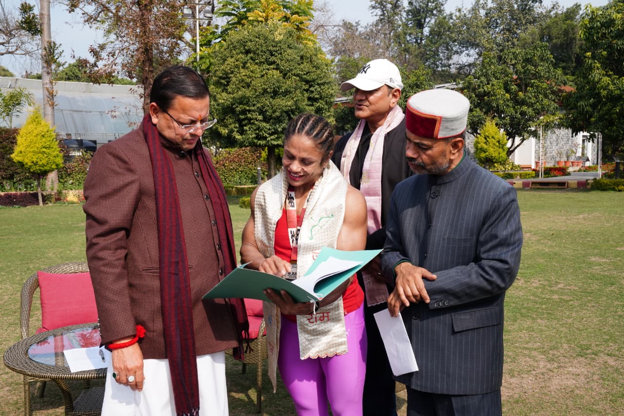 मुख्यमंत्री धामी ने बॉडी बिल्डर प्रतिभा थपलियाल को किया सम्मानित