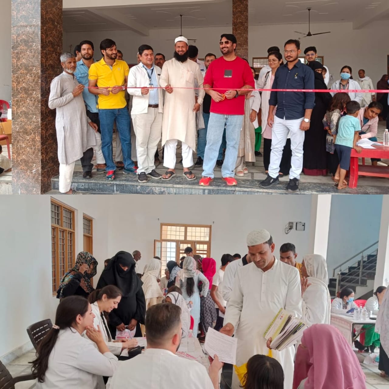 श्री महंत इन्दिरेश अस्पताल की ओर से निःशुल्क जाॅचें की गईं और फ्री दवाईयां भी बांटी