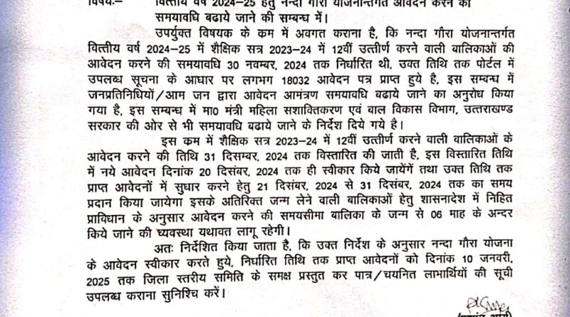 नंदा गौरा योजना आवेदन की बढ़ाई गई अंतिम तिथि, 31 दिसंबर तक कर सकते हैं आवेदन