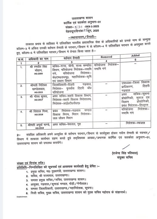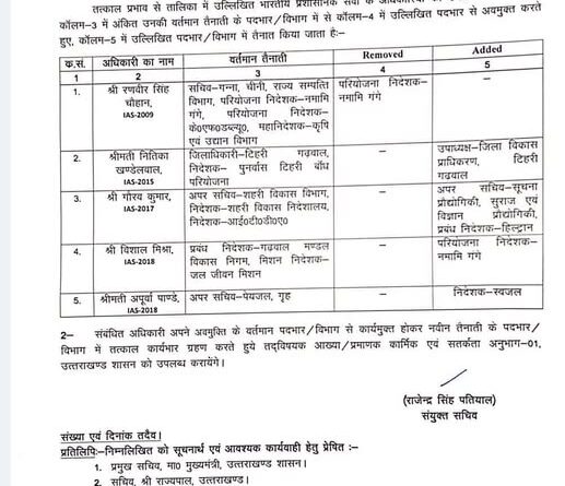 उत्तराखंड शासन से आज की बड़ी खबर