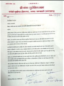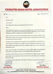 विभिन्न मांगों को लेकर गंगोत्री धाम के व्यापारियों ने डीएम को लिखा पत्र